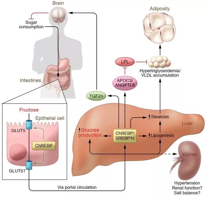 如果摄入的果糖超过肝脏的承受能力,多余的果糖就会被转化为胆固醇和甘油三酯,这样就会增加患心脑血管疾病以及其它疾病的风险。果糖在分解为葡萄糖的过程中还会增加血尿酸及长链脂肪酸,即脂肪的形成,同样对健康产生不利影响。