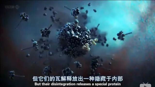 在它们瓦解的时候会释放一种隐藏与内部的特殊蛋白质。