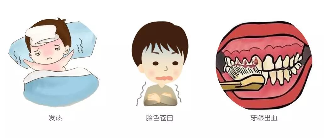 朱佳医生指出,孩子如果出现以下症状,家长需要警惕:1.   出现不明原因的持续发热,抗感染治疗无效2.   全身无力,脸色苍白3.   身上出现一些不明原因的出血点、瘀斑,或者牙龈出血