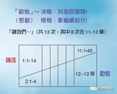 四、希伯来书的内容架构: 这是一封「鼓励」的书信,也是一封「严厉」的书信。